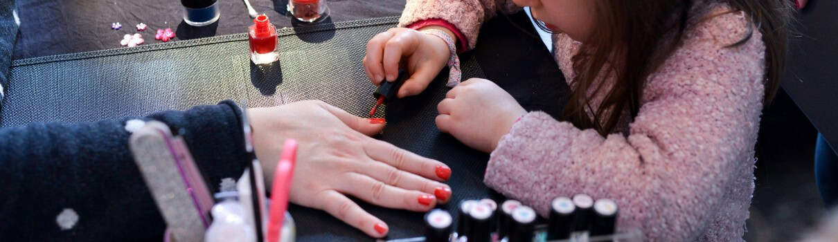 Un atelier pose de vernis et décors adhésifs que les mini girls et leur maman (ou grand-mère) vont pouvoir savourer ensemble. Les grandes posent sur les petites… et inversement!